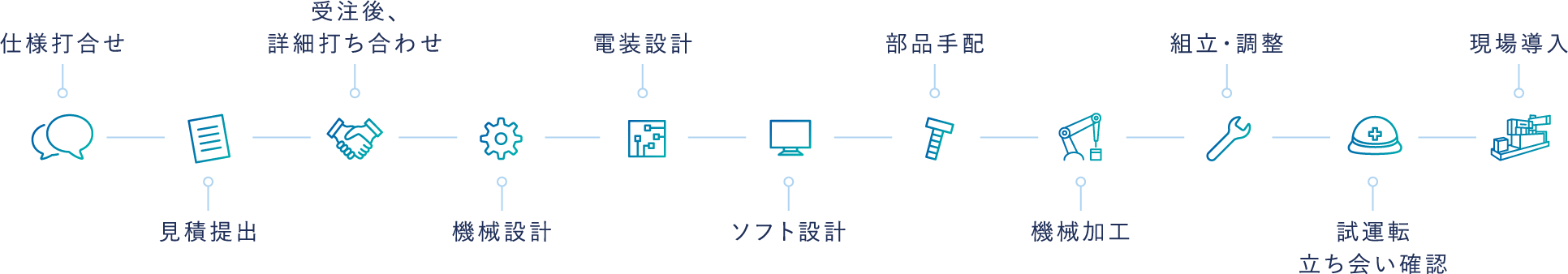 当社では、設計から製造、納入まで一貫した生産体制を構築しています。ご依頼、ご相談はすべて当社にお任せいただくことで、試験室や環境槽といった付帯設備を含め、独自のネットワークでワンストップのトータルプロデュースを実現。お客様の業務負担を軽減いたします。