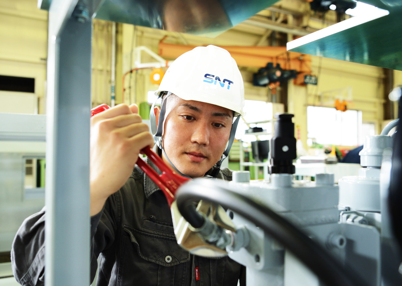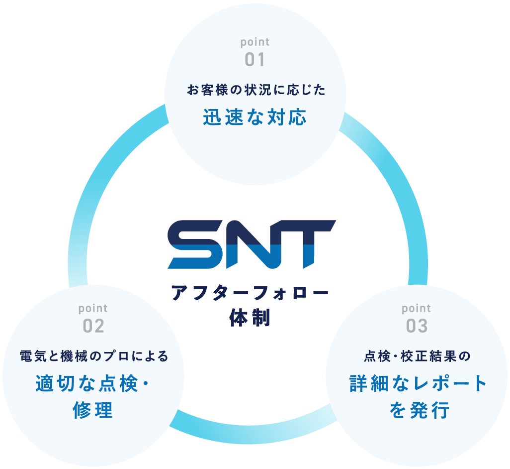 当社では製造まででなく、その後のアフターフォロー体制も整っています。「サービス課」と呼ばれる、修理・点検対応をメインとした部門の担当者が、適切なタイミングでの点検・部品の交換修理を行います。もちろん、急なトラブルにも身軽に対応。お客様よりご依頼いただければ年次点検も行います。設備更新タイミングでの試験機の機能向上のご提案もお任せください。